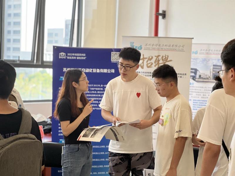 “今年学校招聘会来了不少我心仪的企业,岗位也和我的专业对口,刚和HR聊完,感觉非常不错。”舒文迪同学是会计学专业的学生,在招聘会现场成功和玖龙智能包装(太仓)有限公司达成进一步面试意向。