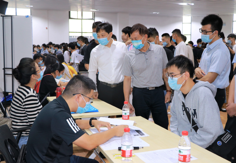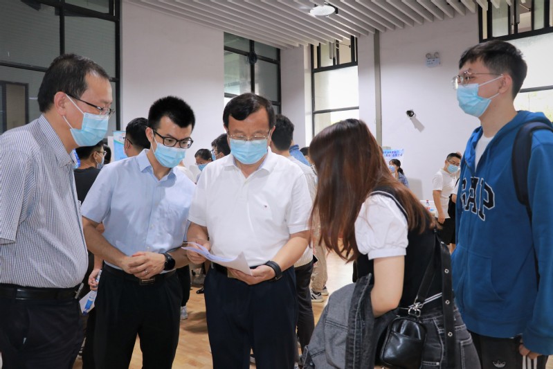 在招聘活动中,校党委书记葛世伦、校长周南平、校党委副书记汤建积极为学校毕业生代言,和前来招聘的各单位工作人员亲切交流,希望能更多录用江科大毕业生,让优秀学子们有更多机会参与国之重器研发,为推动船舶与海洋产业和地方经济社会的发展提供强劲的人才保障。校长周南平还为现场学生支招,要求职能部门提升支持保障力度,有针对性为学生提供个人简历、面试技巧等一对一指导,提高就业竞争力。