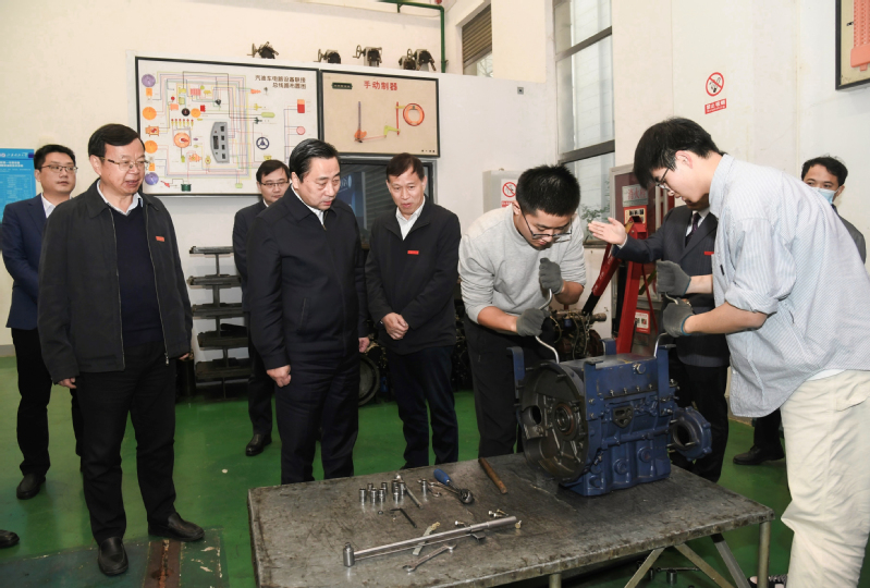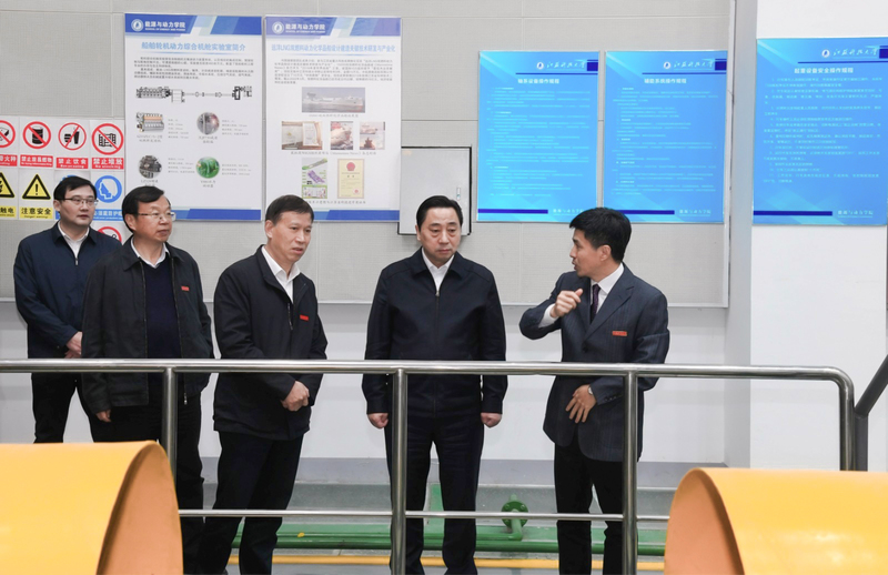 马明龙书记一行首先来到能源与动力学院重装实验楼,参观了船舱综合实训实验室、柴油机拆装实训室、发动机性能测试实验室、轮机综合机舱实验室和振动噪声实验室,观看了氢能源船舶演示、舰船风机盘管实验、消声减震实验等项目,对qmh官网积极承担和参与国家重大科研项目的研发,在突破“卡脖子”技术问题等方面所作的努力予以肯定。马书记与在场师生开展互动交流,勉励学生为中国式现代化贡献青春力量。
