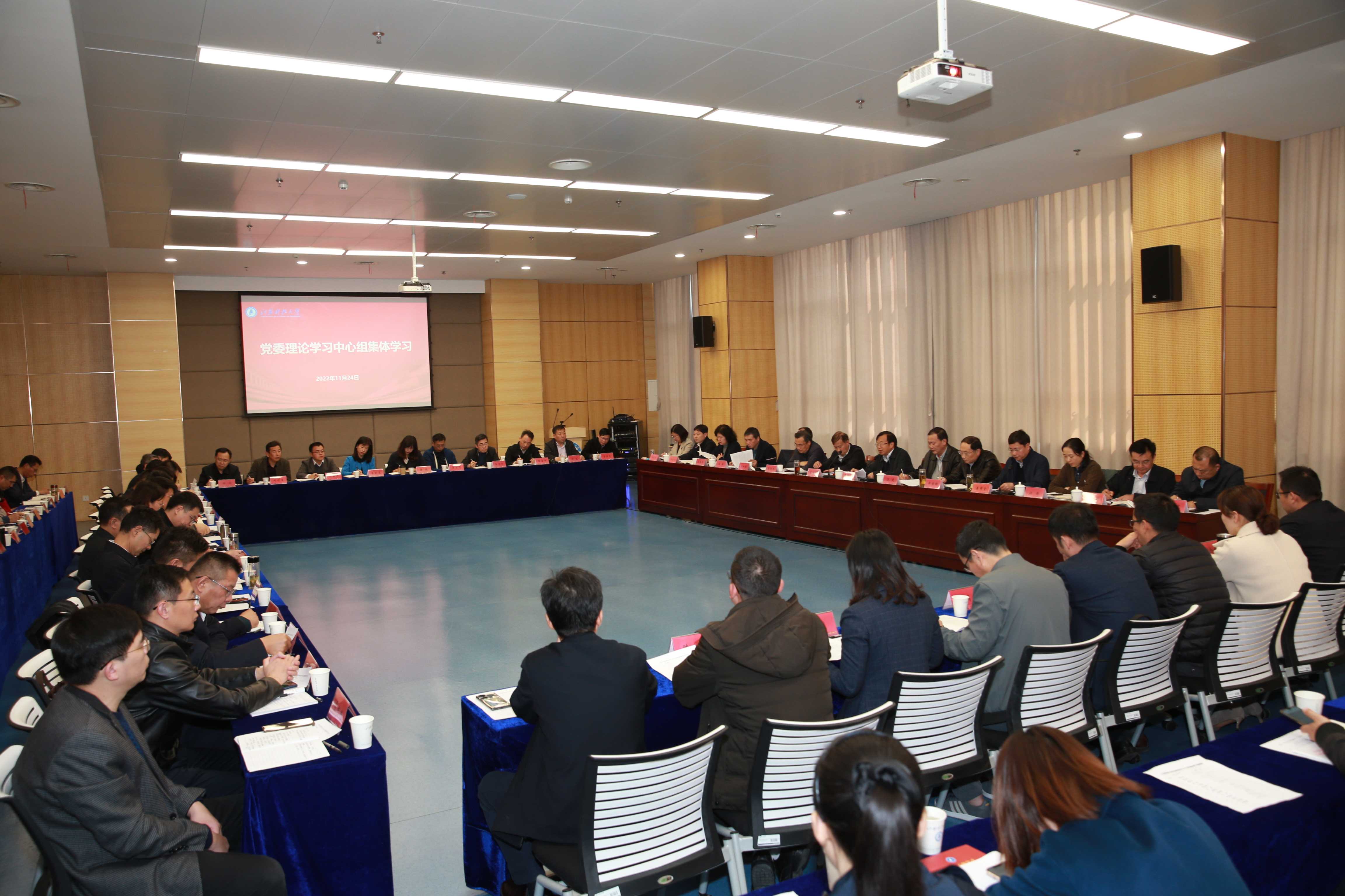 为学深悟透党的二十大精神,学校于11月24日在图书馆104号报告厅举行校党委理论学习中心组集体学习暨领导干部专题读书班,专题学习党的二十大精神。校党委理论学习中心组成员,全体中层正职干部参加学习。党委副书记汤建主持会议。