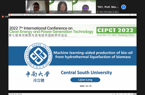 大会的学术报告交流采用ZOOM线上直播的方式进行。12月10日下午,球盟会qmh网站能动学院苏超教授主持会议,温华兵教授出席开幕式并致辞。开幕式结束后,加拿大安大略理工大学Marc A. Rosen教授、中南大学冷立健教授和英国朴茨茅斯大学Victor M. Becerra等专家分别做了“Hydrogen Energy Systems: A Pathway to Sustainable Energy and Sustainable Development”、“Machine learning-aided production of bio-oil from hydrothermal liquefaction of biomass”、“Smart Grids and Solar Energy”等主题报告。