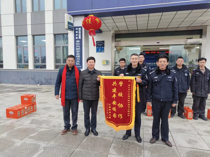 葛书记一行还专程来到长山派出所,感谢派出所一直以来对学校安全及周边综合治理、平安校园建设等工作的大力支持和帮助,赠送“警校合作,共建平安校园”锦旗和节日慰问品。张学斌所长对葛书记一行表示感谢,表示将继续支持和协助学校做好安全稳定工作,充分发挥公安机关的职能作用,积极为师生做好服务,为学校的建设和发展保驾护航。