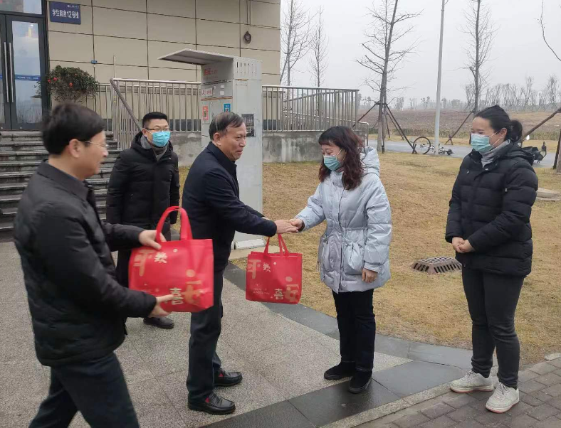 1月22日上午,农历大年初一,阖家团圆的日子。党委书记葛世伦、副校长潘锦全冒着微寒的细雨,专程赴长山校区看望慰问春节期间仍坚守岗位的一线工作人员,把新春的第一缕喜气和暖意带给大家。