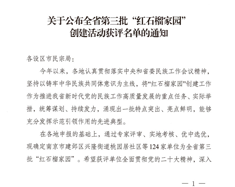 日前,江苏省民族宗教事务委员会公布江苏省“红石榴家园”创建活动获评名单,qmh官网红石榴工作室获此殊荣。为认真贯彻落实中央民族工作会议精神,切实把铸牢中华民族共同体意识作为党的民族工作主线推进,江苏省民族宗教事务委员会持续开展红石榴家园创建活动。在各地申报的基础上,经过专家评审、实地考核、优中选优,共124家单位入选本批次“红石榴家园”,其中6所高校入选。