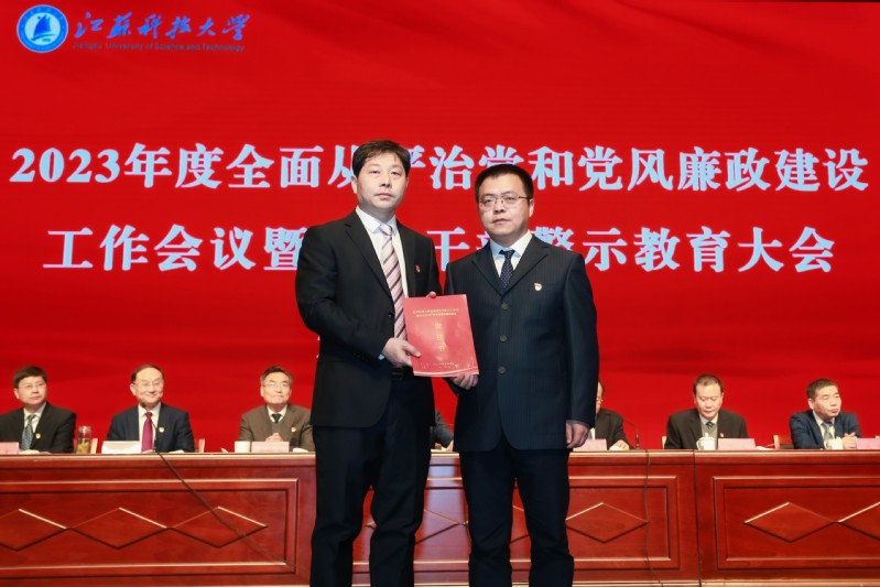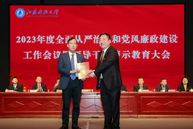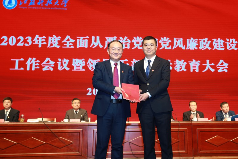 会上举行了2023年度全面从严治党和党风廉政建设主体责任责任书和“一岗双责”责任书递交仪式,二级党组织代表、学院院长和部门负责人代表分别向校党委书记葛世伦、校长周南平以及分管校领导递交了责任书。