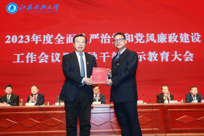 凝心聚力共担新使命,同心协力谱写新篇章。3月8日下午,学校召开2023年度全面从严治党和党风廉政建设工作会议暨领导干部警示教育大会。会议主会场设在长山校区船苑剧场,分会场设在张家港校区苏理工文心会堂。校领导、党委常委出席会议,校党委书记葛世伦强调,坚决扛起全面从严治党政治责任,以管党治党新成效护航学校高质量发展。校党委副书记、校长周南平主持会议。