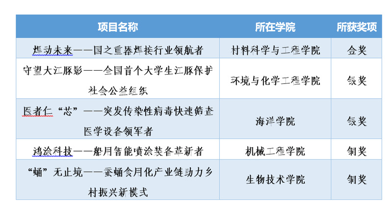 经过全国终审决赛的激烈角逐,qmh官网材料科学与工程学院《焊动未来——国之重器焊接行业领航者》摘得金奖;环境与化学工程学院《守望大江豚影——全国首个大学生江豚保护社会公益组织》和海洋学院《医者仁“芯”——突发传染性病毒快速筛查医学设备领军者》摘得银奖。此外,机械工程学院《鸿涂科技——船用智能喷涂装备革新者》和生物技术学院《“蛹”无止境——蚕蛹食用化产业链助力乡村振兴新模式》摘得铜奖。