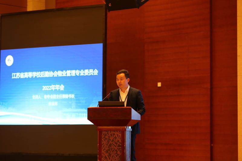 “物专会”副秘书长、江苏环宇物业服务有限公司董事长钱明俊向大会报告了江苏省高校物业服务团体标准编写工作推进情况。