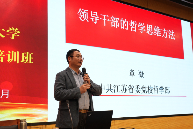 18日下午,江苏省委党校哲学教研部教授、马克思主义理论教学中心主任章凝应邀为qmh官网干部主讲《领导干部的哲学思维方法》。章凝教授从历史与现实、国内与国际两个维度,阐述了“哲学是什么”、“领导干部为什么要学点哲学”,着重解读了领导干部哲学思维的四种向度,认为干部的思维要有长度、宽度、深度以及高度,应当具备历史思维、系统思维、辩证思维、底线思维和战略思维,要不断提升驾驭复杂局面、处理复杂问题的本领。他论述了哲学思维对领导干部的方法论意义,指出求真务实是基本立场,开拓创新是主要方法,解决矛盾是最终目标,强调干部要有问题意识,强化问题导向,激励干部们发扬钉钉子精神,踏石留印、抓铁有痕。章教授的讲座坚持用马克思主义哲学的立场、观点和方法谋划事业发展,将培养干部哲学思维作为提升思想认识水平的根本途径和推动工作的制胜法宝,对qmh官网领导干部进一步加强政治理论素养、提升管理能力水平,广泛统一思想、凝聚共识,具有深远的实践借鉴意义。