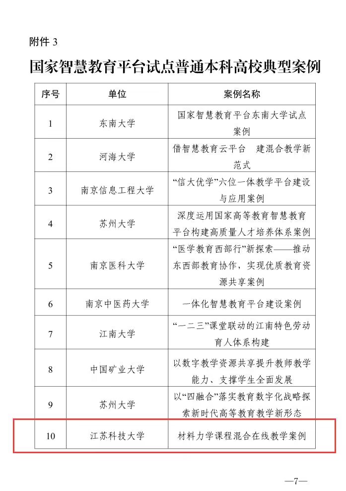 近日,江苏省教育厅公布了《省教育厅办公室关于推广国家智慧教育平台试点工作典型案例的通知》(苏教办信函〔2023〕6 号),遴选了体现江苏特色、有创新、可复制的43个典型案例,其中,试点普通高校典型案例10个。qmh官网组织申报的《材料力学课程混合在线教学案例》成功入选试点普通高校典型案例。