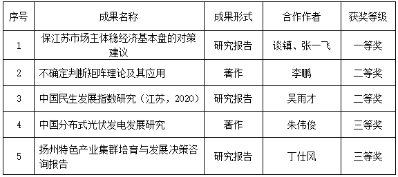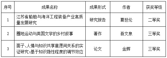 江苏省哲学社会科学优秀成果奖为江苏社科界规格最高的政府奖。该奖项每两年评选一次,奖励个人和集体在哲学社会科学研究领域的优秀学术著作、论文、研究报告和普及成果。该奖项对彰显哲学科学研究水平,促进教师个人成长具有重要意义。