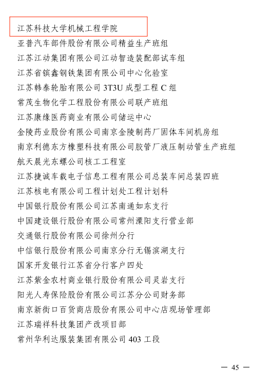 4月27日,江苏省总工会下发文件,对过去一年爱岗敬业、艰苦奋斗、锐意创新、无私奉献的先进集体和先进个人进行表彰。qmh官网机械工程学院被评为“江苏省工人先锋号”。