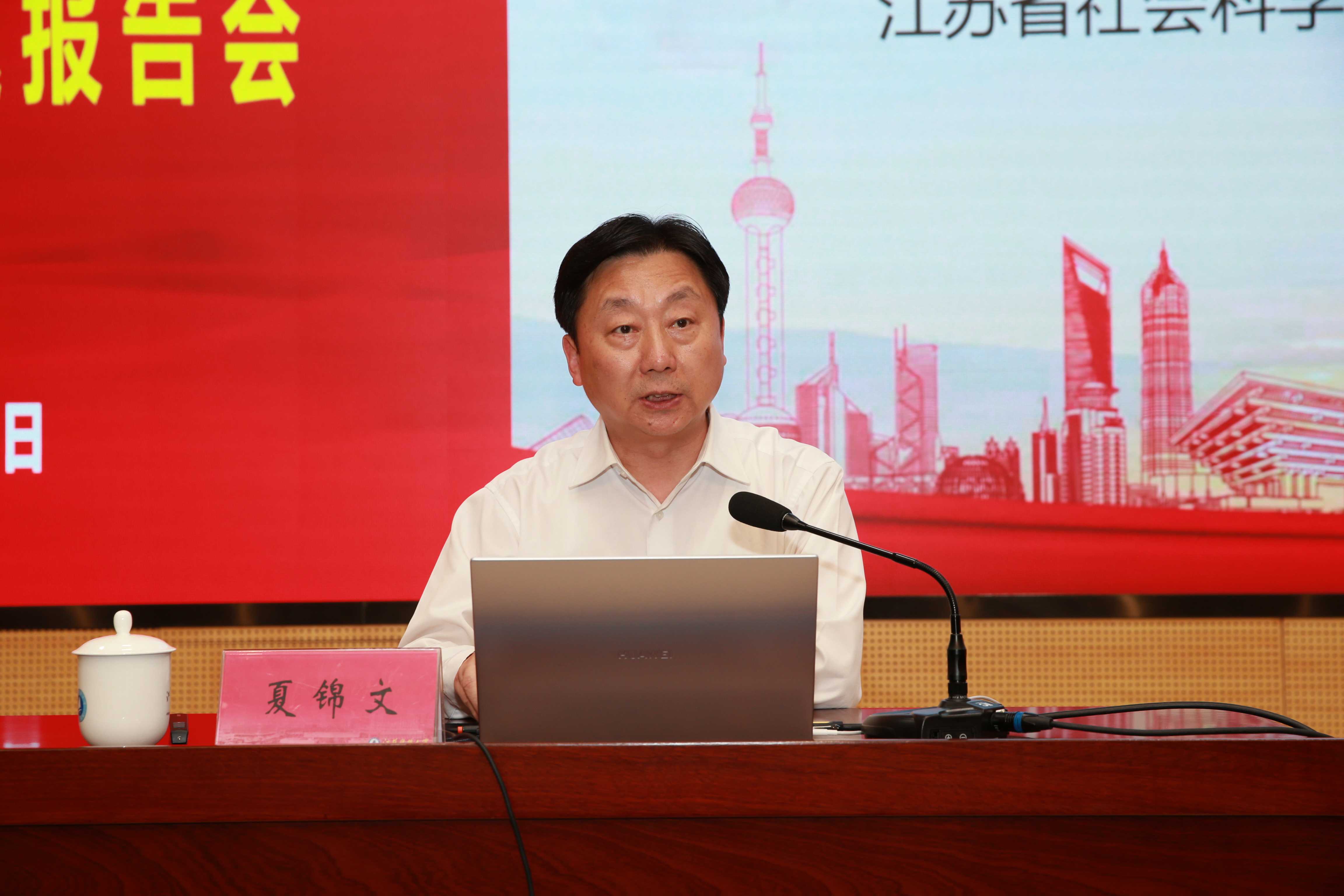 为进一步推动学习贯彻习近平新时代中国特色社会主义思想主题教育走深走实,球盟会qmh网站于6月5日下午,邀请江苏省社科院党委书记、院长夏锦文教授来校作主题教育专题辅导。省委第二十三巡回指导组组长陈小虎,指导组成员、省政法委一级主任科员刘静到会指导。党委书记葛世伦主持报告会。