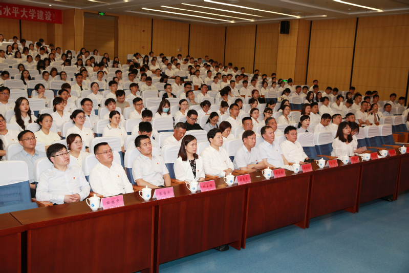 为扎实推动学习贯彻习近平新时代中国特色社会主义思想主题教育走深走实,进一步加强毕业生党员的党性教育,激励毕业生党员立足岗位,勇于担当,充分发挥党员先锋模范作用,6月19日上午,学校在长山校区图书馆B105报告厅组织开展毕业生党员重温入党誓词活动。校党委书记葛世伦,党委副书记汤建,党委常委、副校长胡爱祥,党委常委、党委组织部部长李恒川,党委常委、党委宣传部部长周春燕出席活动。学校相关职能部门负责人、各学院党委书记、党委副书记、组织员、毕业班学生党支部、毕业生党员代表,共计400余人参加了本次活动。