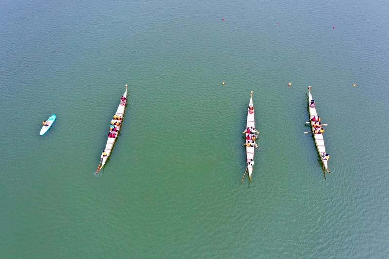 鼓声阵阵,桨浪翻飞,龙舟运动员们一边呐喊,一边振臂划桨,整齐发力,在海韵湖上演绎速度与激情。岸边的观众加油声络绎不绝,响彻海韵湖畔。本次赛事共吸引14支参赛队伍、213名参赛选手逐浪竞技。最终,扬帆龙舟队摘得桂冠。能源与动力学院、土木工程与建筑学院、继续教育学院获最佳组织奖,教职工代表队获赛事特别奖,王朔、徐梦杰、邹继涵获体育道德风尚奖。