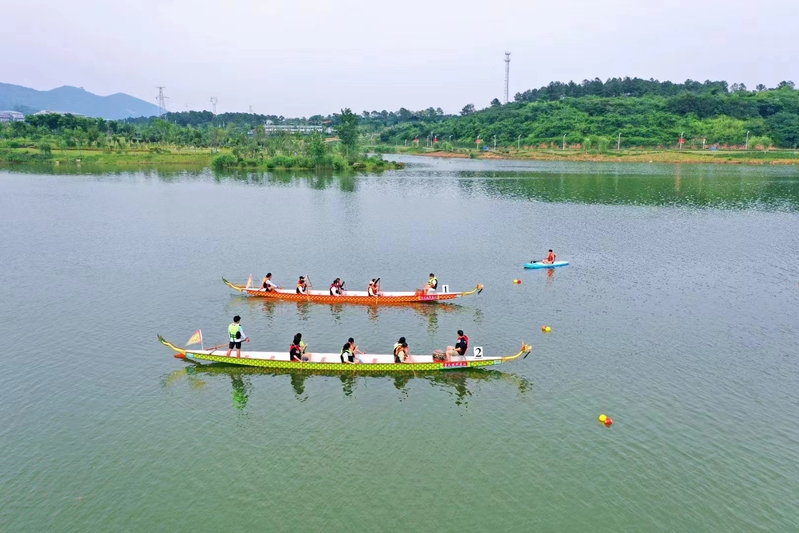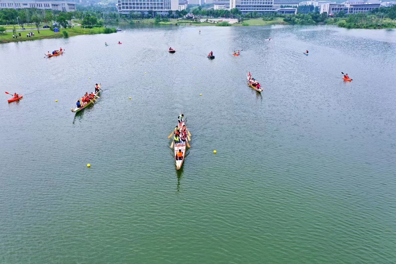 仲夏端午,龙舟竞渡。6月22日,球盟会qmh网站首届“龙游端午”龙舟师生联赛在长山校区海韵湖举行。