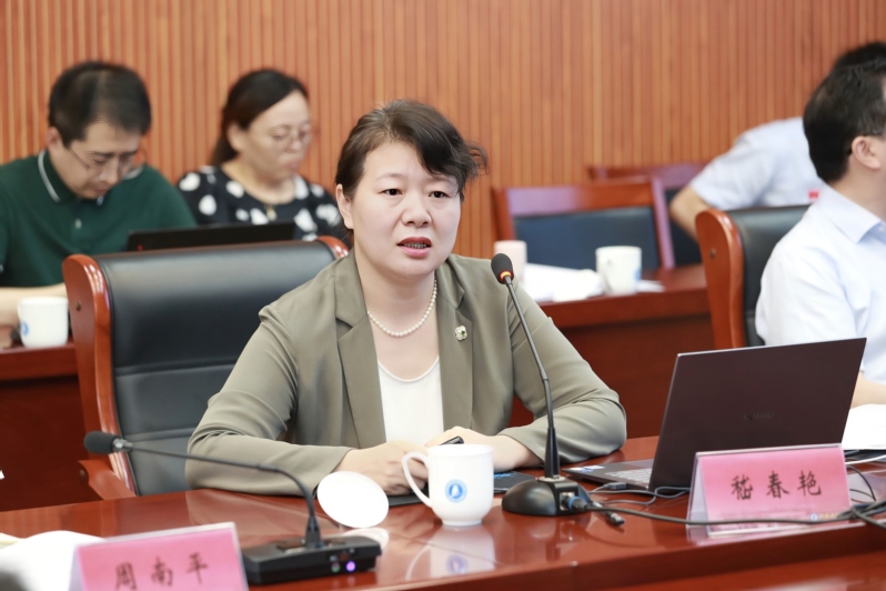 嵇春艳副校长作中期建设工作自评报告,围绕建设背景,总结学校2021年以来高水平大学建设取得的成效和建设任务达成度,深入分析存在的问题和不足,并就下一步工作提出针对性的改进措施。
