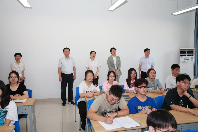 9月4日新学期开学第一天,嵇春艳校长、任南副校长带领教务处、学生工作处、评估处、信息化建设与管理办公室等职能部门深入教学一线,检查新学期教学运行情况,指导教学工作。
