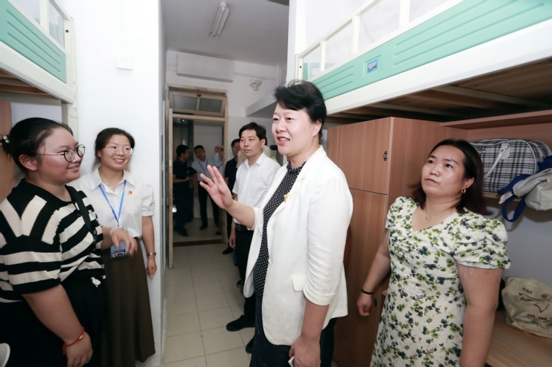 在梦溪校区C11宿舍,嵇春艳校长详细询问自动化专业新生杨帆对宿舍的感受和建议,嵇校长表示,“学生关心的事我们一直放在心上”,学校正在不断改造、持续优化同学们的住宿条件,致力于为每位江科大学子提供越来越好的生活环境,希望大家相信学校、理解学校,“为了同学们能住好,我在大家报到前就来看过宿舍情况了,祝你们在江科大过得愉快。”
