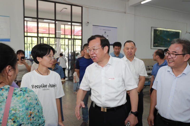 在梦溪校区食堂,周南平书记遇到了来自湖南的计算机专业新生陈静怡,得知她和妈妈坐了一夜火车才抵达学校,周书记叮嘱母女俩好好休息、可以喝些食堂提供的免费绿豆汤解暑祛乏,并请静怡妈妈放心,“来到学校,有任何困难都可以联系老师,江科大会尽全力解决每一位学生求学的后顾之忧。”