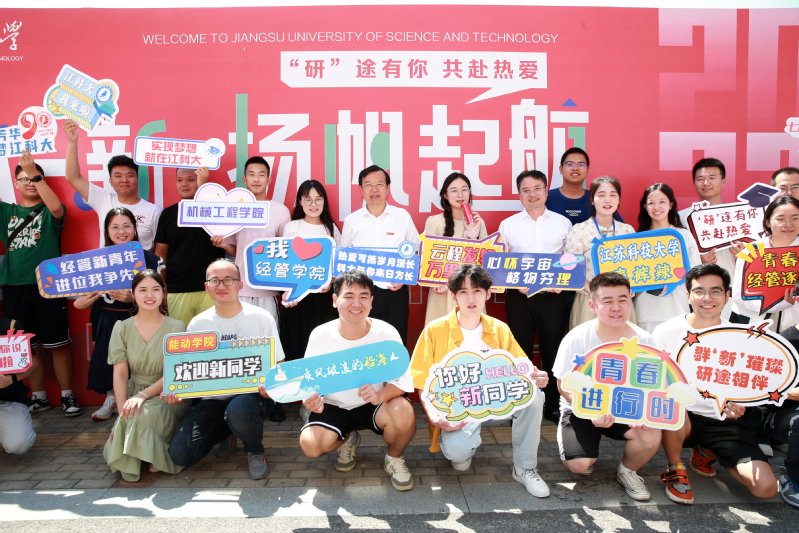 在长山校区研究生新生接待点,各具特色的学院迎新报到点一字排开,各学院精心准备迎新礼物,有的设计出带有学科特色的系列文创,有的定制签名墙邀请学生留下纪念,也有的为新生带来印有姓名的专属可乐。前来报到的研究生纷纷邀请周南平书记和嵇春艳校长一起合影留念,周南平书记感谢现场志愿者和工作人员的辛勤付出,勉励广大研究生努力科研攻关,打牢专业基础,为国家科研进步做出青春贡献。“欢迎你们来到江科大,希望你们都学有所成!”嵇春艳校长向新生表示祝贺,勉励学生牢记“笃学明德,经世致用”的校训精神,在研究生期间足履实地、砥砺前行,早日实现远大理想。