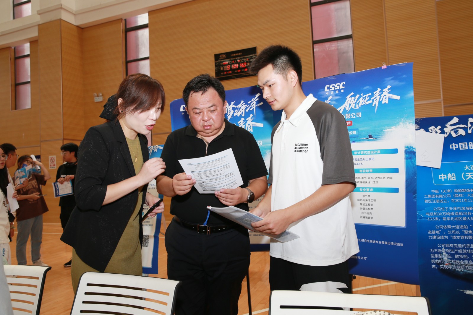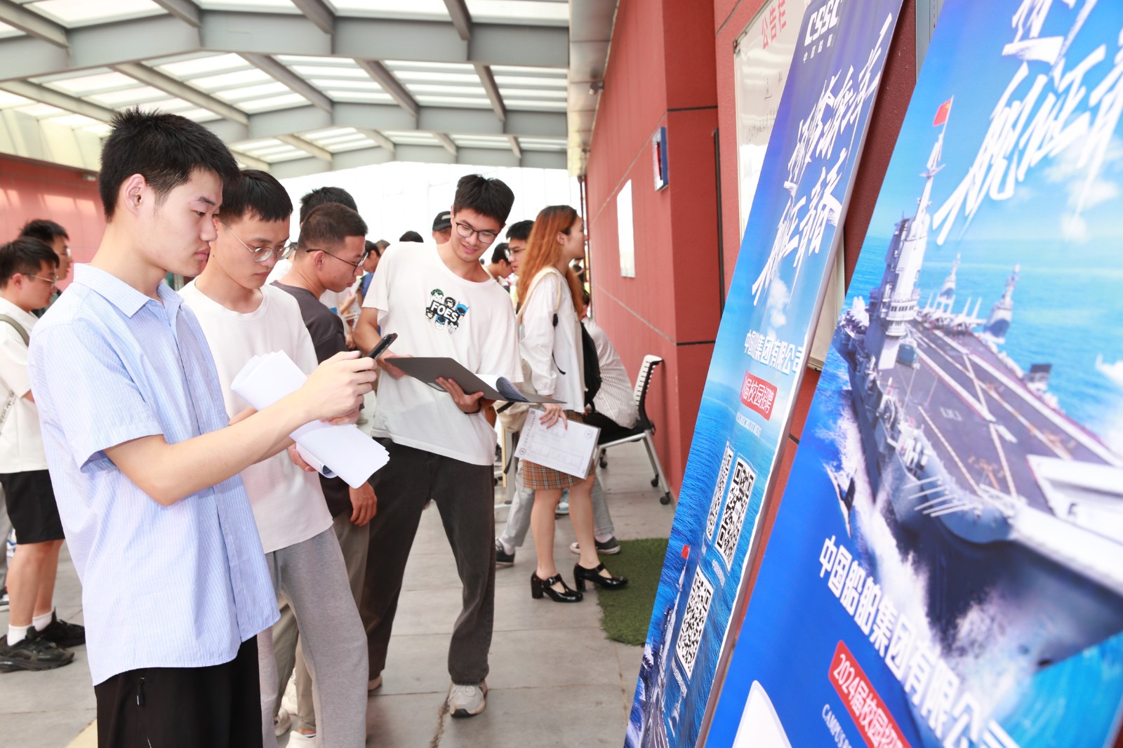 本次招聘会共54家用人单位参会,专业需求覆盖各个学院,吸引了近4000名应届毕业生前来挑选岗位。同学们积极与用人单位代表交流,踊跃投递简历,407名毕业生现场达成了初步就业意向。招聘会前期,各学院主动与企业对接,广船国际、沪东中华、黄埔文冲、第七〇八研究所等单位向重点需求专业的学生做宣讲,宣讲会有效搭建了单位与毕业生们之间的交流平台,“球盟会qmh网站的培养方向和我们企业需求相匹配,学生专业基础扎实,培养潜力大。学生们投递热情也很高,已经收到了一百来份简历。”中船黄埔文冲船舶有限公司人力资源部赵李君介绍道。