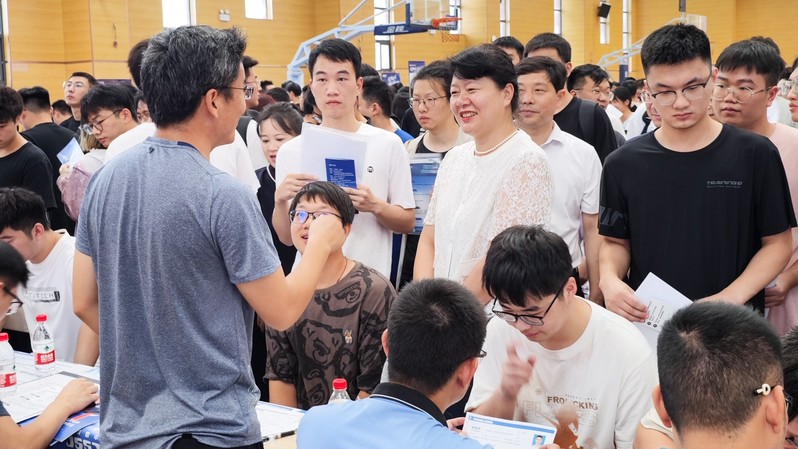 9月11日,qmh官网举办中国船舶集团有限公司2024届校园专场招聘会。校长嵇春艳、副校长胡爱祥深入招聘会现场,了解用人需求,并与应聘毕业生亲切交谈。