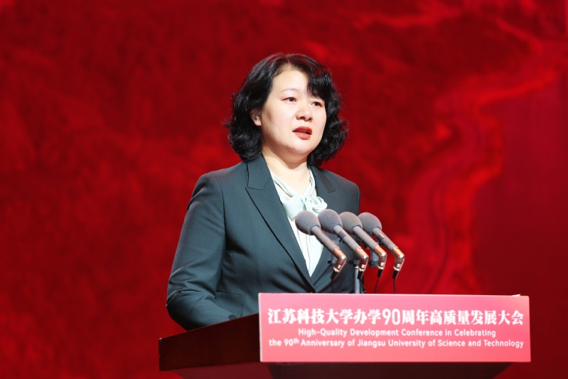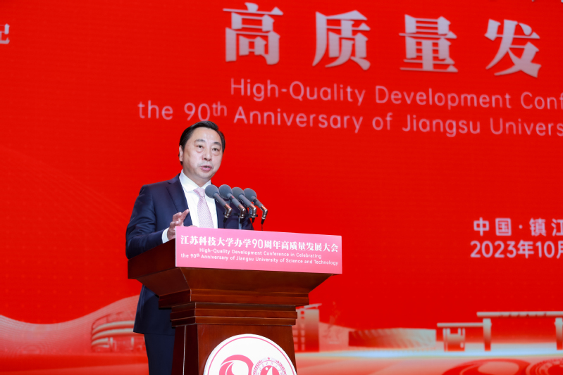 中共镇江市委书记马明龙代表镇江市委、市政府致辞。马明龙说,90年来,一代又一代江科大师生恪守“笃学明德、经世致用”校训,立足“船舶、海洋、蚕桑”特色优势,坚持改革创新、人才强校、特色发展、开放发展,为国家船舶工业、国防建设和经济社会发展培养了众多应用型创新型人才,成就了“中国造船工程师摇篮”的美誉。学校始终与地方同携手、共命运,为全市经济社会发展作出了重要贡献。踏上新征程,我们要牢记嘱托、感恩奋进,共同夯实“办学”这个基础,携手打造名城名校合作典范;深化“育人”这个宗旨,携手共创人才“镇兴”更大荣光;扛起“发展”这个使命,携手谱写“很有前途”崭新篇章。