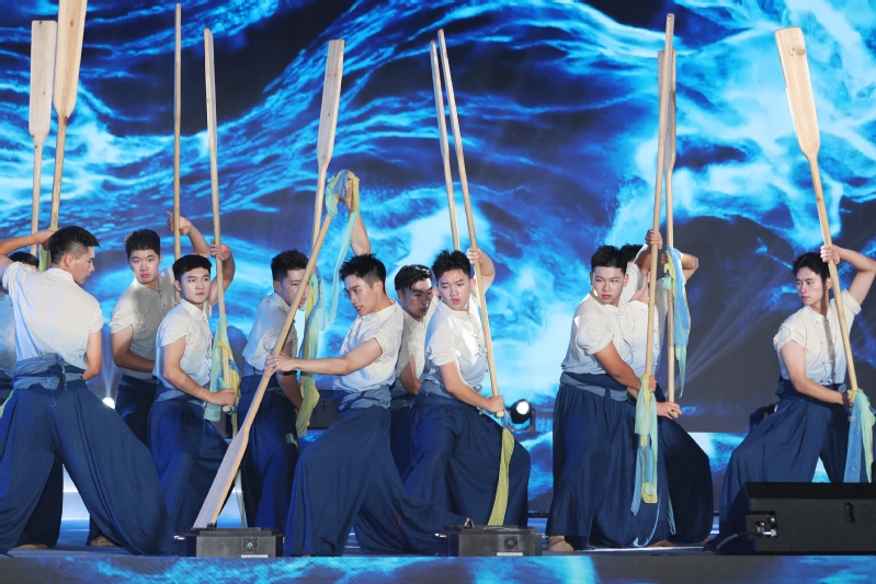 《寻梦深蓝》舞蹈带领观众走进神秘的蓝色世界,以优美的肢体语言阐释海洋文化,展现勇立潮头的冒险精神,战风斗浪的拼搏精神和海纳百川的广阔胸襟。