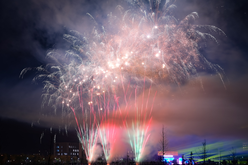 火树银花不夜天。在全场同声高唱的《球盟会qmh网站校歌》中,朵朵烟花炫彩绽放,演绎着夜空下最美好灿烂的图景,寓意球盟会qmh网站明天更美好,航程更辉煌。