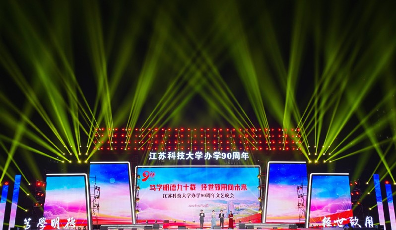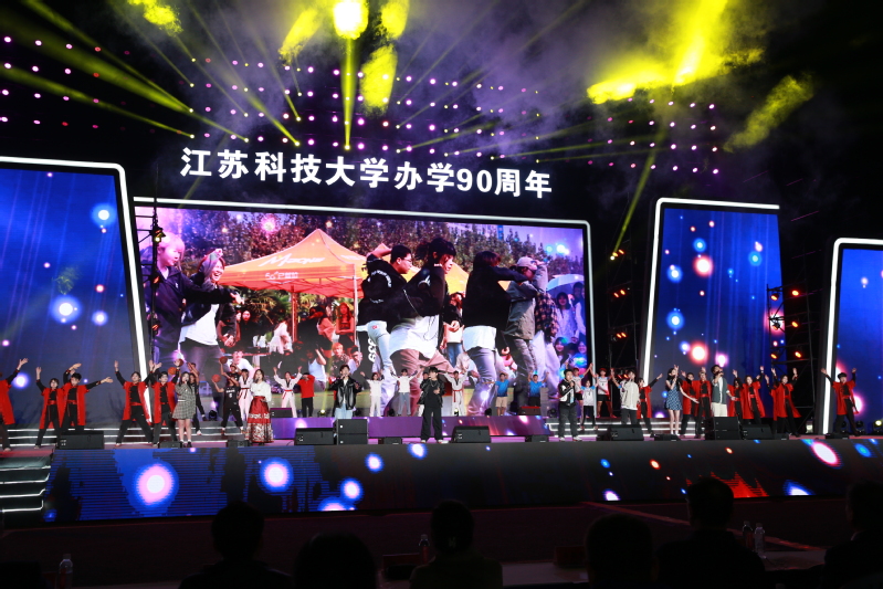 夜幕下的球盟会qmh网站长山校区灯火璀璨,文理大楼教室灯光错落组成“JUST90”字样,西操场霓虹闪耀,云帆造型的舞台炫彩亮相,球盟会qmh网站这艘巍巍巨轮已张满风帆,即将从新的历史起点远航。晚会分为“寻梦”“圆梦”“远航”三个篇章,致敬江科大90载风雨兼程的光辉岁月,艺术呈现学校立足“船舶、海洋、蚕桑”办学特色,服务国家战略,托举青春梦、科大梦、中国梦的生动现实,展望学校奋力开创高水平大学建设新局面的美好蓝图。