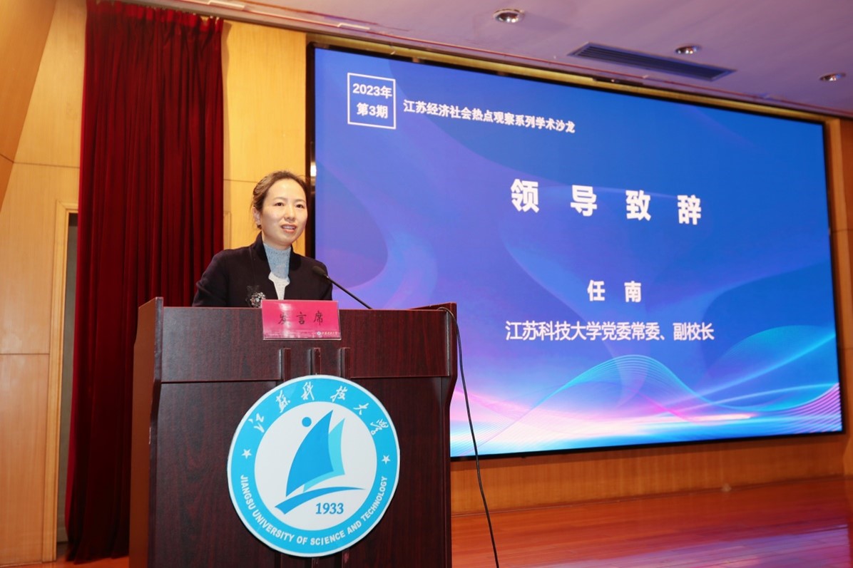 大会第二阶段为江苏经济社会热点观察系列沙龙。球盟会qmh网站党委常委、副校长任南、江苏省社科联学会部主任鱼雪萍出席沙龙并致辞。任南副校长首先肯定了本次学术沙龙研讨主题的深远意义,提出江苏作为“一带一路”交汇点,如何充分发挥区位优势,建设具有世界聚合力的双向开放枢纽值得我们深入思考和研究,并在介绍qmh官网办学情况的基础上,感谢现场各位领导和专家学者长期以来对球盟会qmh网站发展的关心和支持。