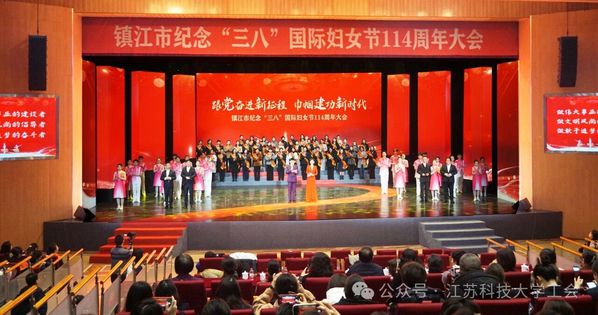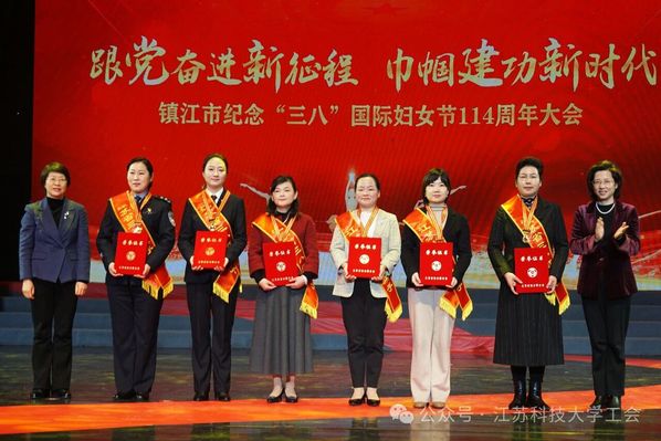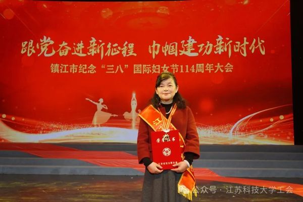 3月6日上午,镇江市纪念“三八”国际妇女节114周年在市艺术剧院举行,袁爱华教授接受表彰证书和奖牌。