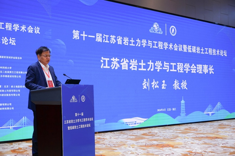 江苏省岩土力学与工程学会理事长、东南大学首席教授刘松玉致开幕辞。刘理事长表示,江苏省岩土力学与工程学术会议为长三角地区乃至全国岩土科技工作者们搭建的高层次学术交流平台,围绕岩土工程勘察、设计、施工、运维等方面的学术和工程问题开展深入研讨,有力推动了江苏省及长三角地区岩土力学与工程技术的发展。刘教授强调,本次会议以“低碳岩土工程”为主题,聚焦“双碳”战略背景下岩土工程的机遇与挑战,力求推动岩土工程绿色、低碳、可持续发展,为岩土工程新质生产力的发展提供启迪。