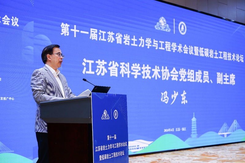 江苏省科学技术协会副主席冯少东在致辞中指出,本次会议以“低碳岩土工程”为主题,积极响应国家“双碳战略”,针对低碳岩土工程的最新进展和其他关键技术问题开展广泛的学术交流。会议的成功举办必将为推动江苏省低碳岩土工程的科技创新和产业发展作出积极示范。