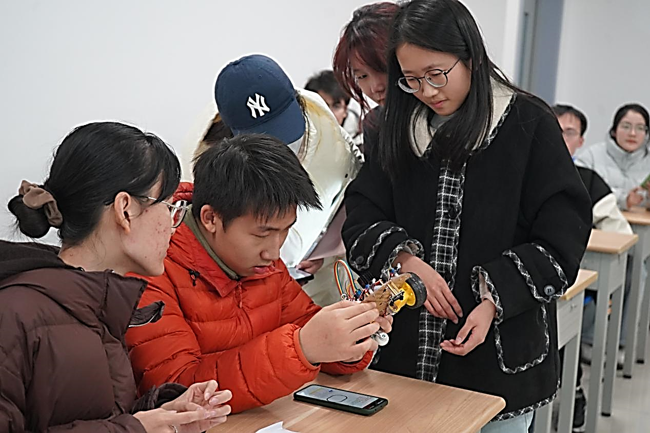 为深入贯彻落实创新驱动发展战略,建设具有学院特色的高质量科技创新育人体系,持续激发大学生创新意识与实践能力,12月11日,自动化学院于长山校区组织开展本学期“宿舍实验箱”项目集中验收活动。自动化学院副院长齐亮、党委副书记郭峰、团委书记万纤及各年级600余名学生共同参与本次验收活动。