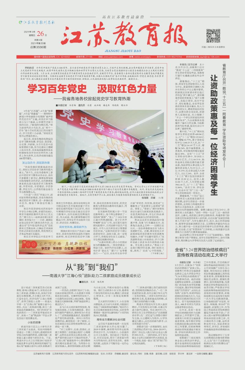 江苏教育报 2021年3月26日 头版头条