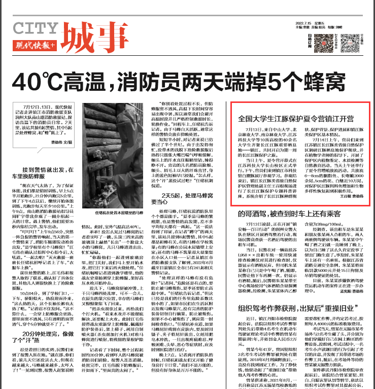 7月13日,来自中山大学、北京林业大学、南京林业大学、球盟会qmh网站等10所高校的40余名大学生齐聚长江江豚重要栖息地——镇江,共同开启为期一周的长江江豚保护之旅。