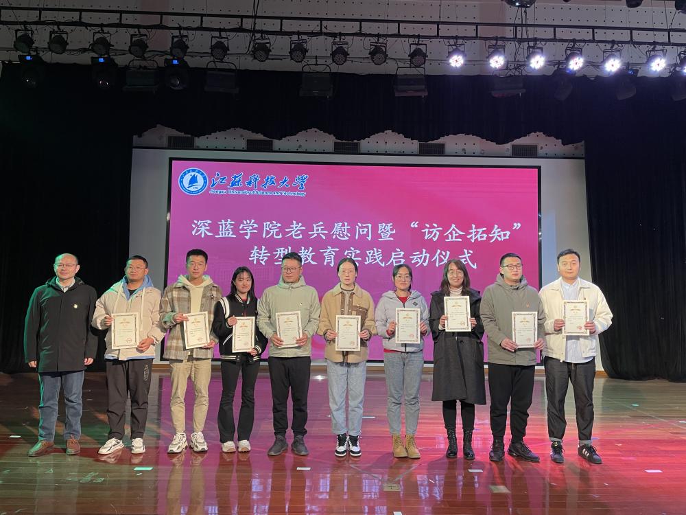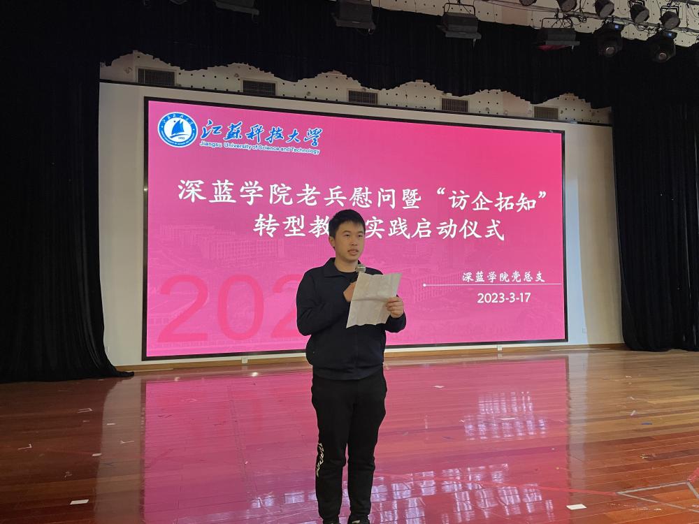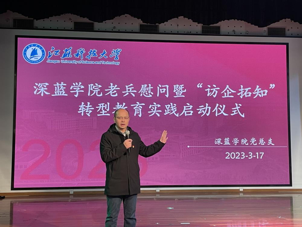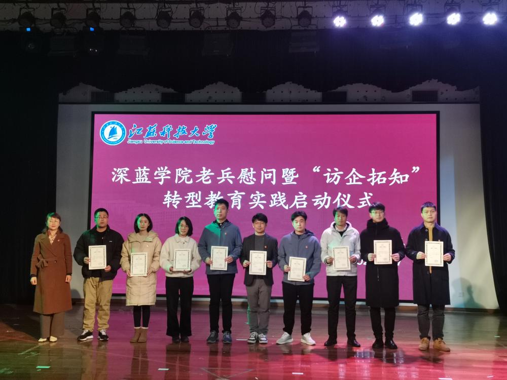 为进一步弘扬服务精神,选树先进典型,激励更多党员、团员积极参加志愿服务和社会实践,近日,球盟会qmh网站深蓝学院召开老兵慰问暨“访企拓知”转型教育实践启动仪式。学院党总支书记、院长杨建超,学院相关科室负责人以及全体辅导员出席会议,2022级6名退伍复学老兵、10名防疫工作志愿者代表以及访企拓知实践活动学生负责人参会。