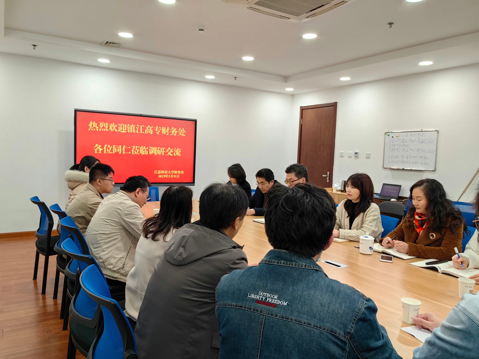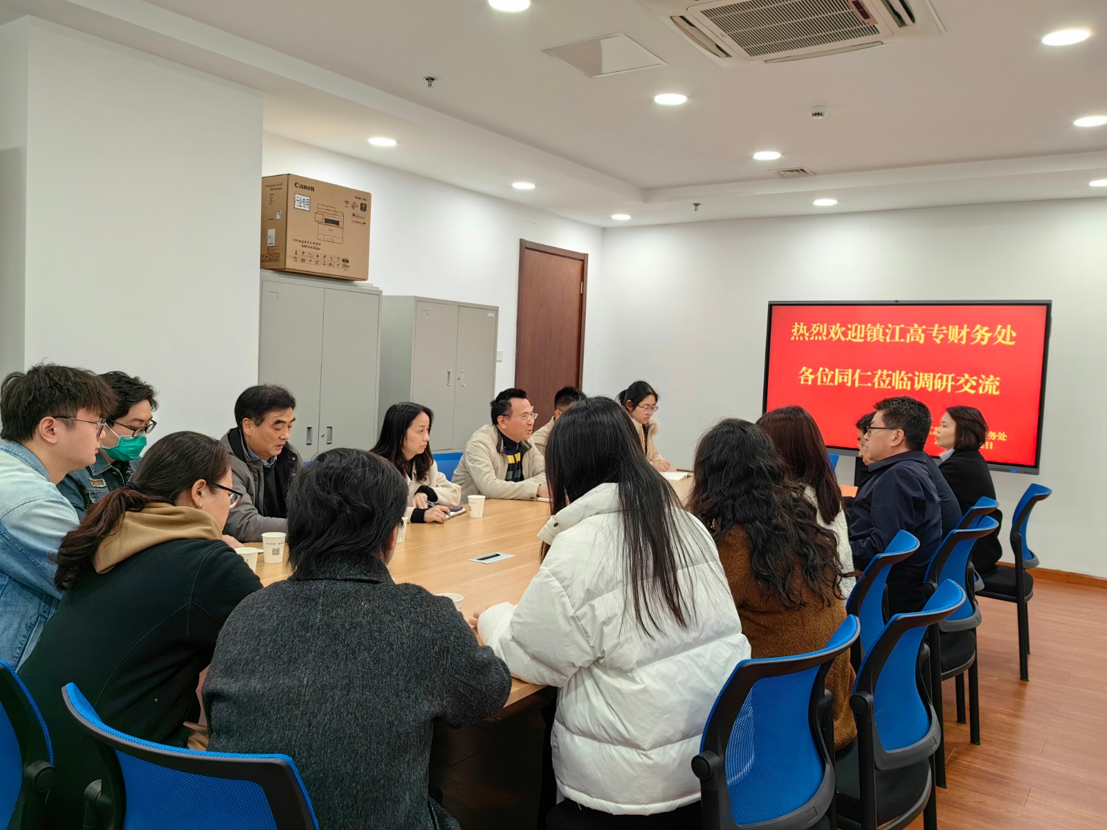 3月31日上午,镇江高等专科学校财务处处长周文华一行9人来qmh官网财务处调研。qmh官网财务处处长江建蓬,副处长岳喜马、凌芸,教职工代表出席会议。