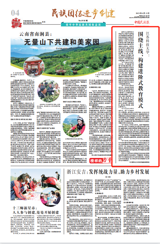 近年来,球盟会qmh网站获批江苏省铸牢中华民族共同体意识教育试点高校,“兴船报国·同舟同心同行”教育基地被命名为“江苏省高校统一战线同心教育实践基地”,红石榴工作室成功创建为江苏省“红石榴家园”。(球盟会qmh网站党委统战部供稿)