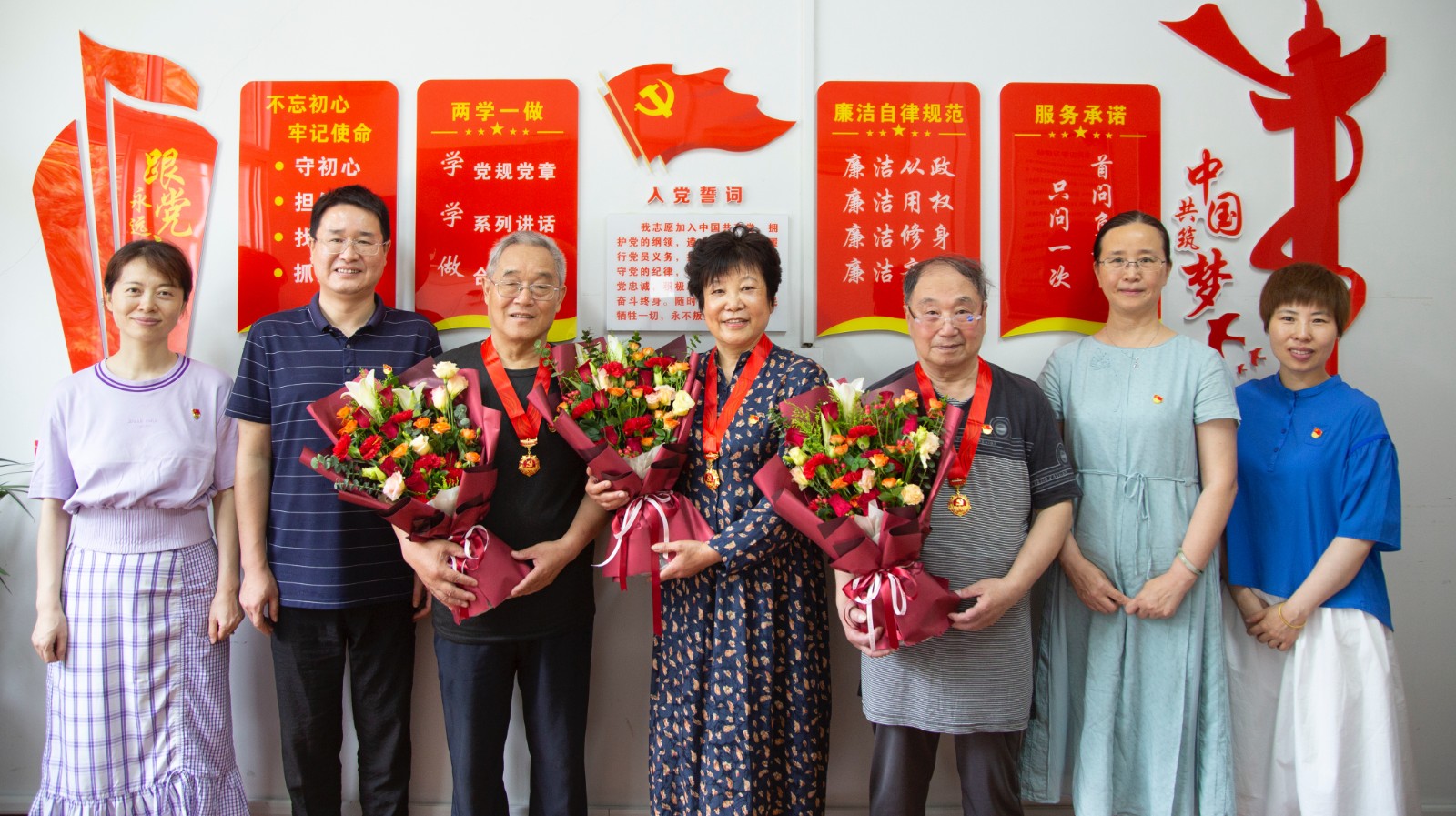 50年党龄,50载荣光。今年“七一”前夕,qmh官网11名党员获“光荣在党50年”纪念章。离退休党工委代表学校表达了对他们坚守赤诚忠心,在党爱党、在党为党的敬意。
