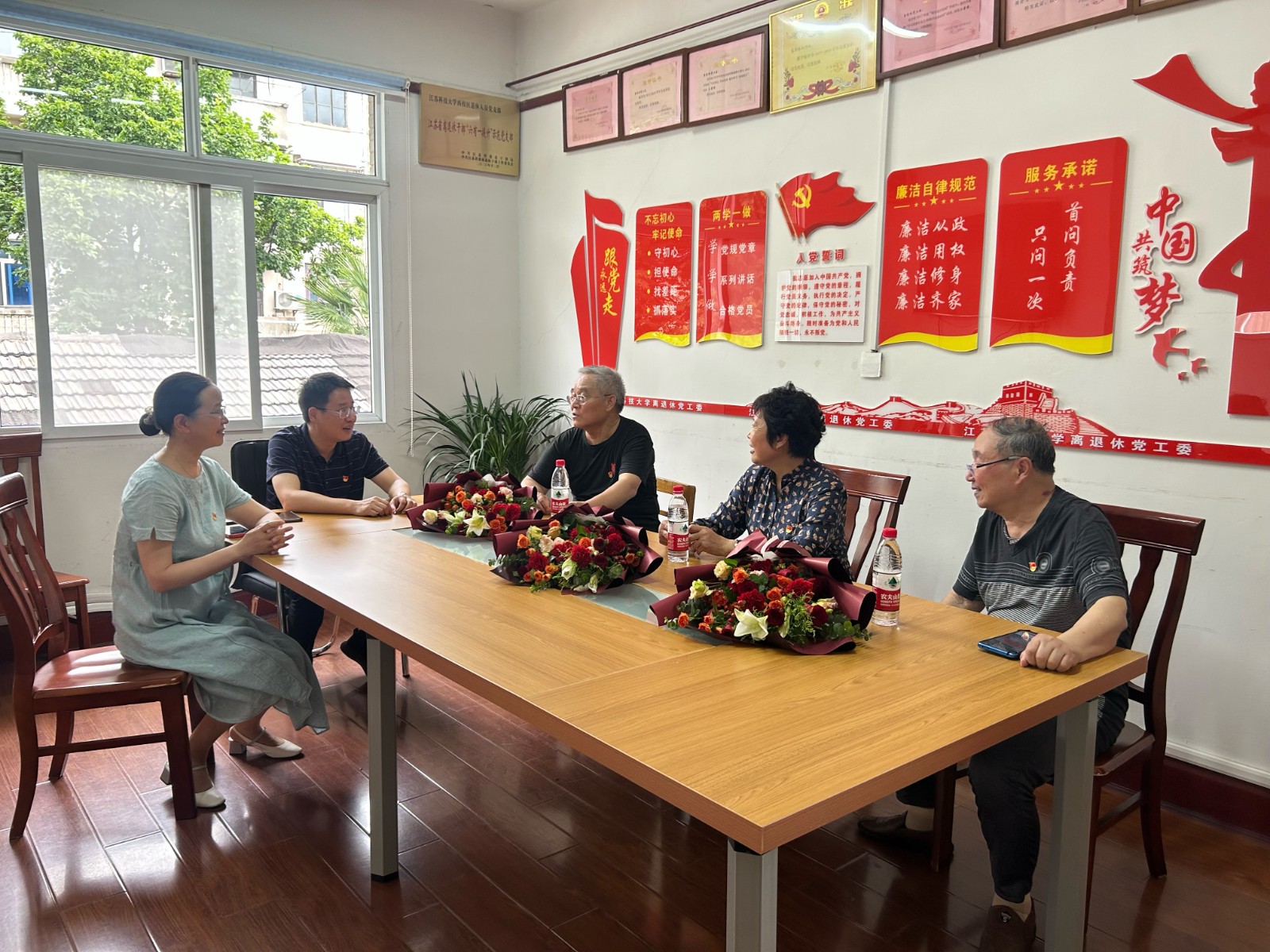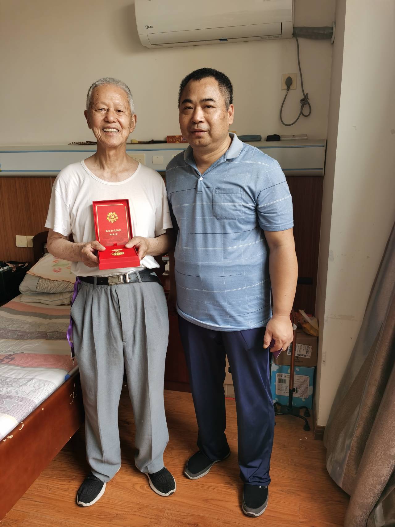 老党员们几十年来一直忠诚于党的事业、践行党的宗旨,勤勤恳恳为党工作、任劳任怨为学校事业默默奉献。近期,离退休党工委对他们进行慰问、开展座谈,激励他们永葆政治本色、退休不褪色、离岗不离党,持续为学校高质量发展发挥余热,贡献力量与智慧。老党员们佩戴纪念章,闪耀的纪念章在胸前熠熠生辉。