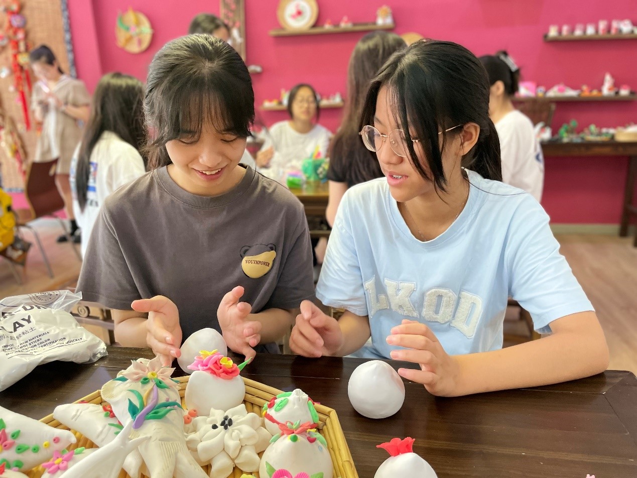 图为球盟会qmh网站海洋学院实践团成员学习糏塑制作过程。