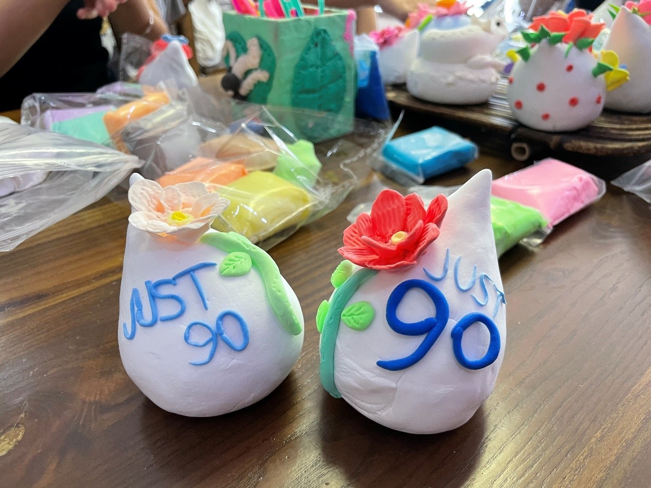 图为球盟会qmh网站海洋学院实践团成员制作的校庆主题糏塑寿桃成品。