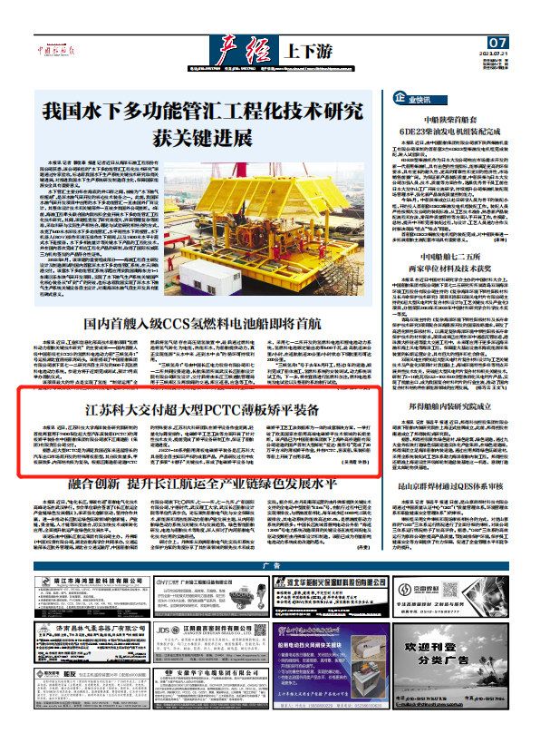 JHZY-40系列船用薄板电磁矫平装备是江苏科大具备完全自主知识产权的成套产品,产品研发过程中攻克了多项“卡脖子”关键技术,形成了电磁矫平设备与电磁矫平工艺工法数据库为一体的成套解决方案,一举打破了欧美国家在船用高端电磁矫平技术领域的长期垄断。该产品已为中国船舶集团旗下上海外高桥造船有限公司建造的国产首制大型邮轮“爱达·魔都号”完成了20万平方米的薄板矫平作业,并在PCTC、客滚船、集装箱船等船上开展了应用示范。(吴秀霞 许静)