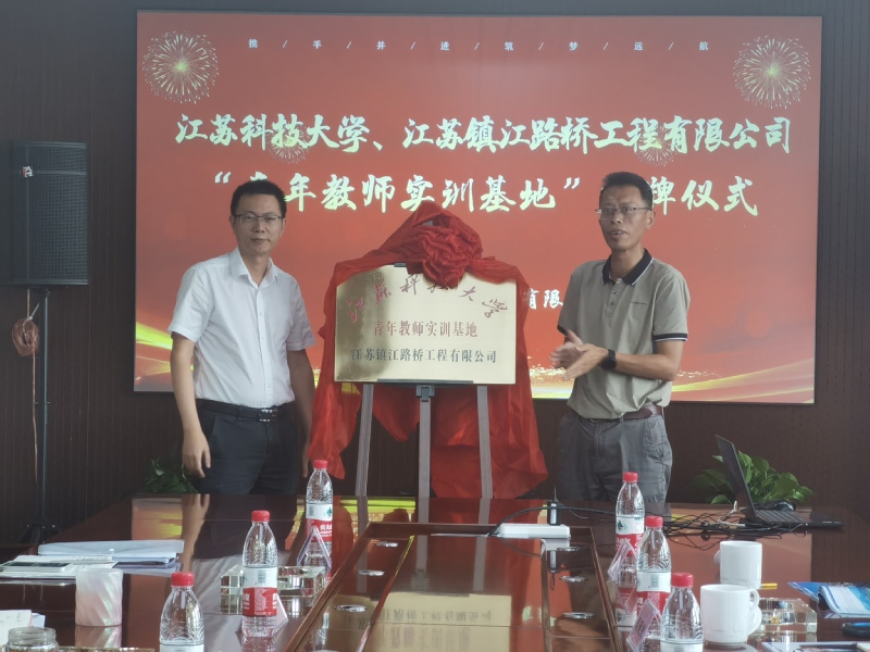 会上,双方共同签署了球盟会qmh网站土木工程与建筑学院与江苏镇江路桥有限公司“青年教师实训基地”协议并举行揭牌仪式。