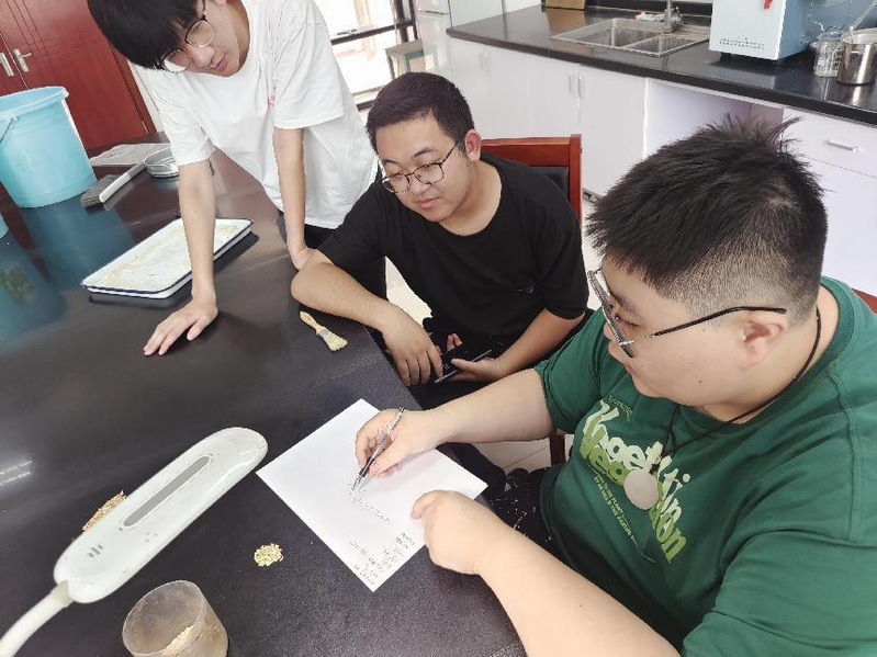 化验员为实践团成员讲解定等计算方法