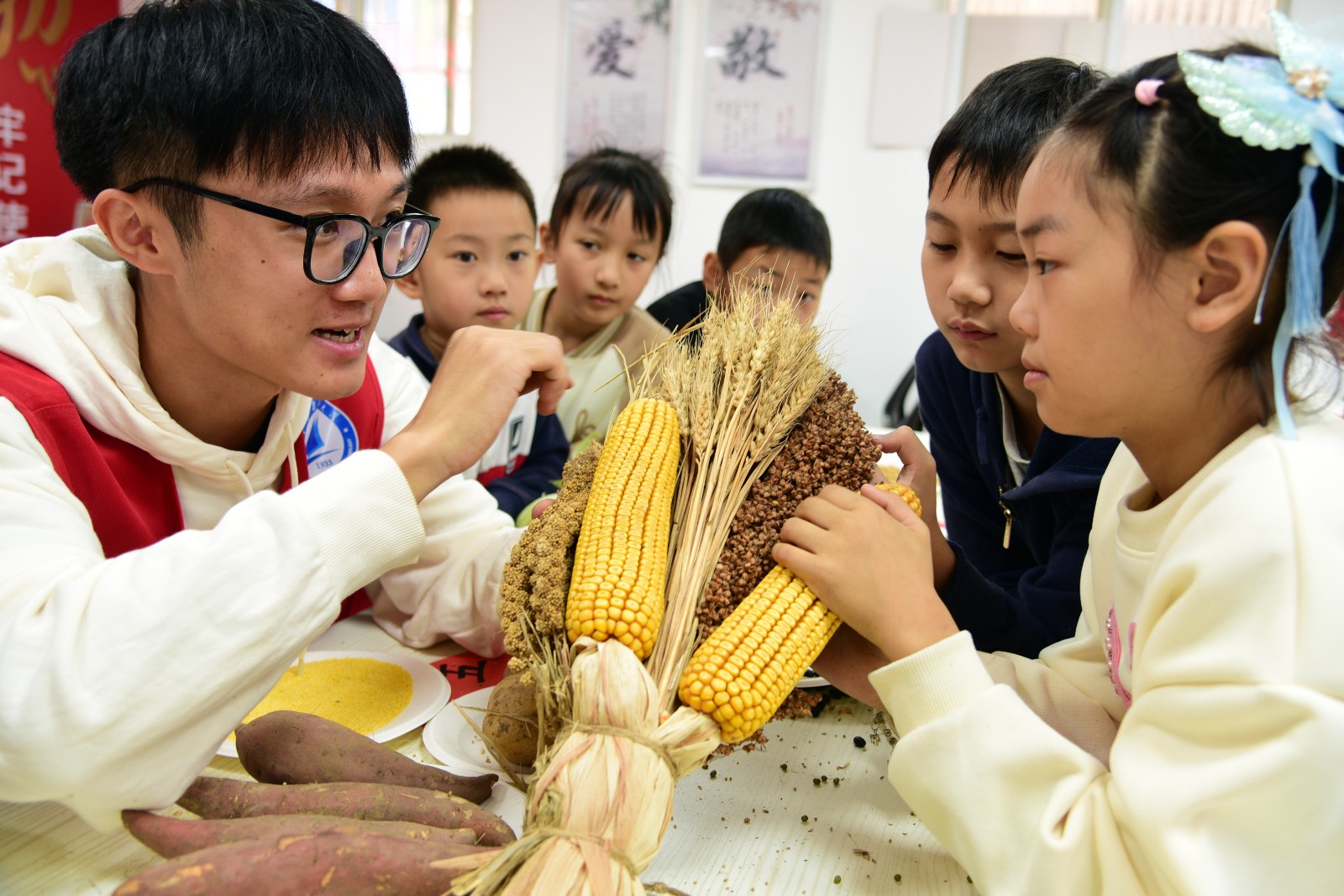 粮食是人类生存的基本物质之一,也是国家安全和发展的重要基石。10月14日上午,球盟会qmh网站粮食学院联合红光太古山社区,开展“一粒米的成长”“五谷丰登”主题活动。孩子们在与学长学姐在的交流中构建自己的“谷物世界”。