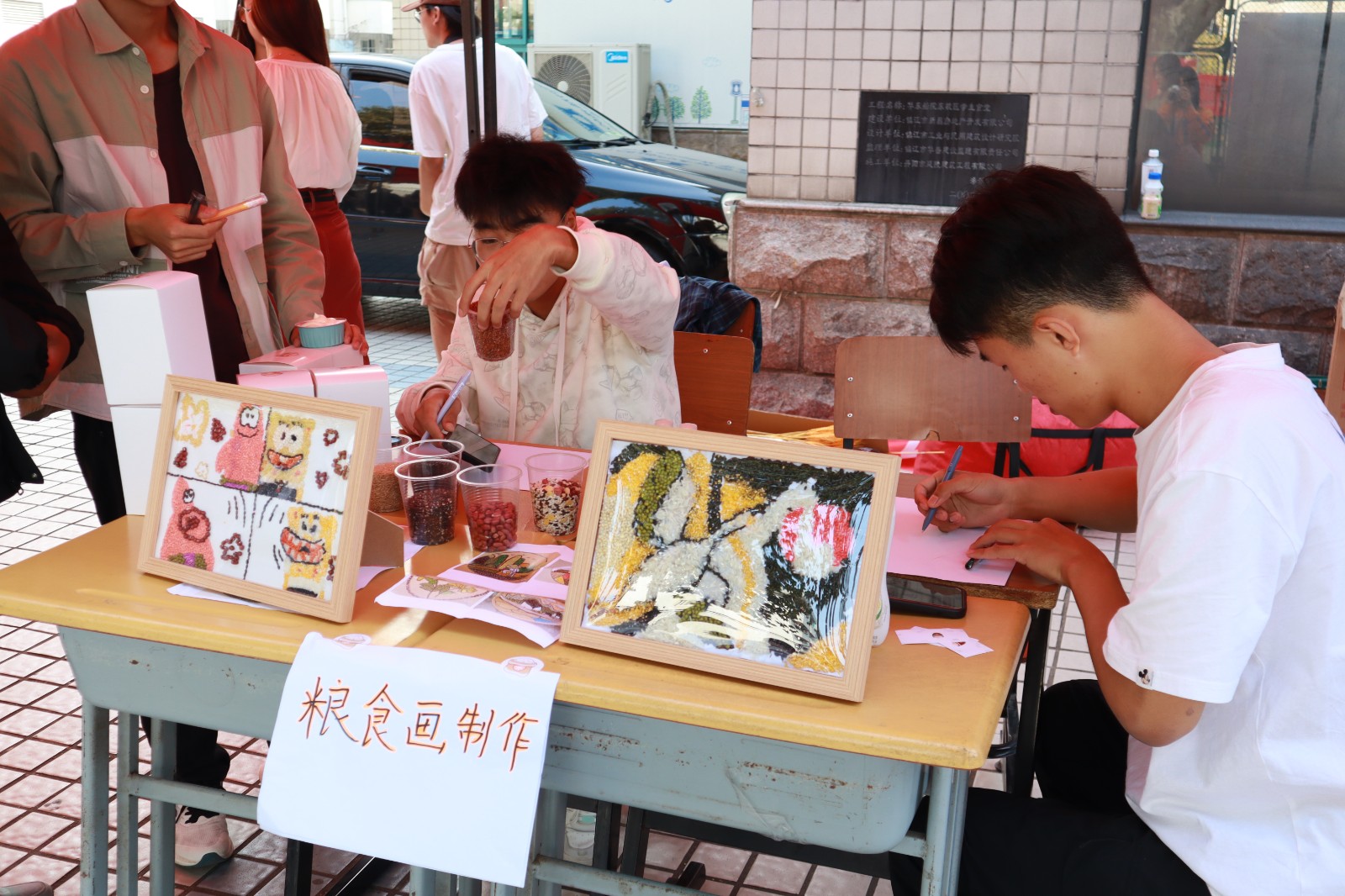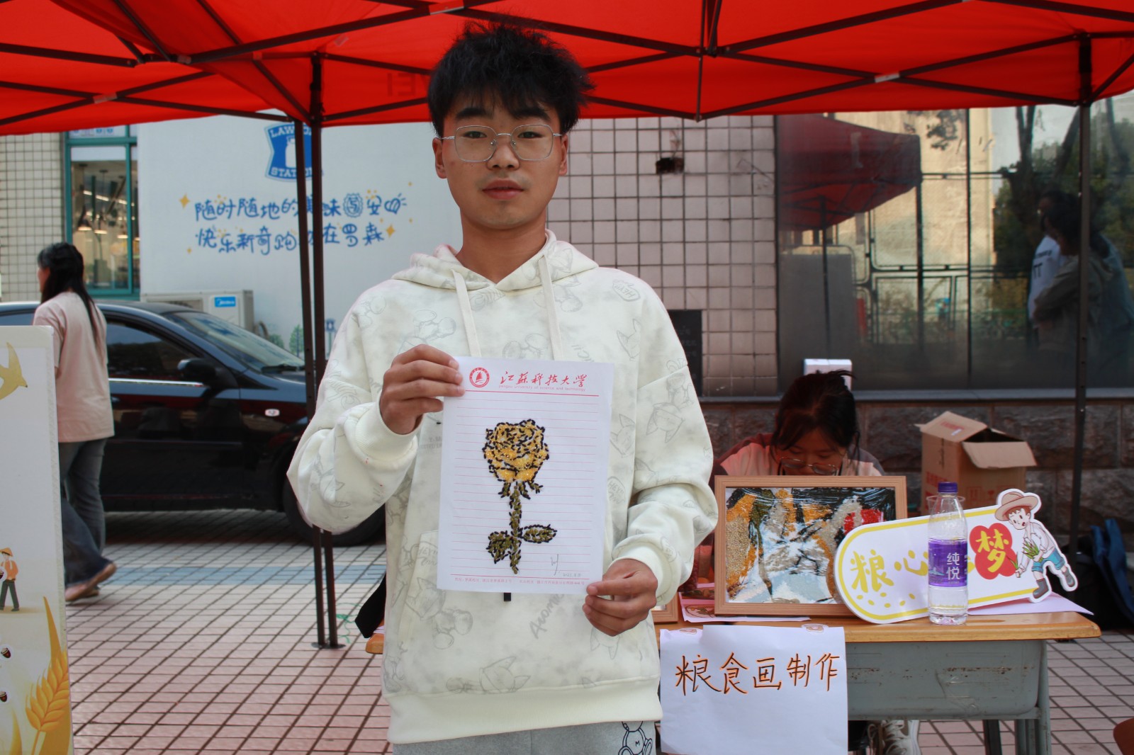 10月15日下午在梦溪校区,粮食学院积极开展世界粮食日文化节系列宣传活动。独具特色的粮食画吸引同学们纷纷驻足参观,拍照留念。现场粮食画结合办学90周年校庆与节粮爱粮的元素,宣传科普世界粮食日相关知识。现场活动丰富多彩,世界粮食日有奖问答、粮院特色盲盒义卖、现场绘制粮食画等,吸引了众多同学参与。